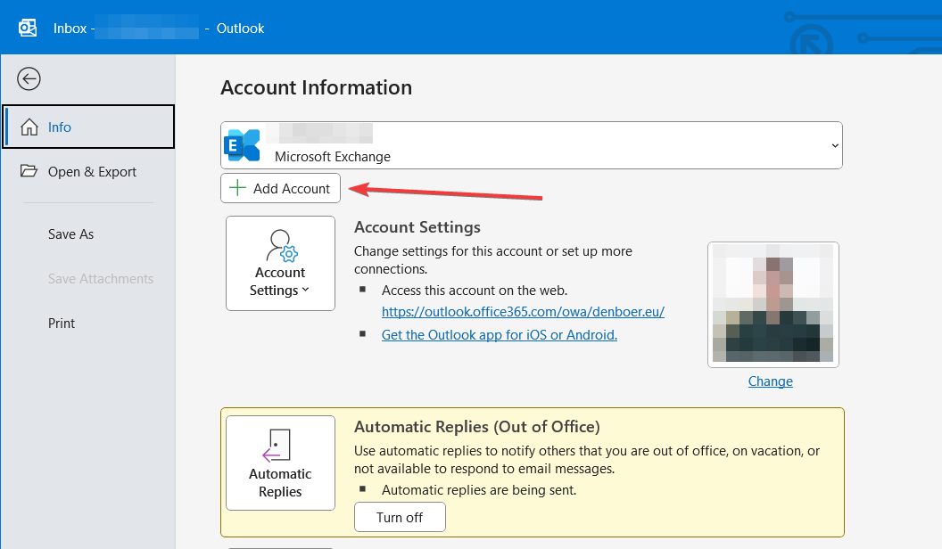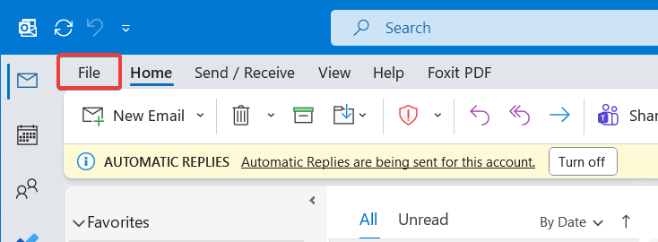 In Outlook ga naar File/Bestand