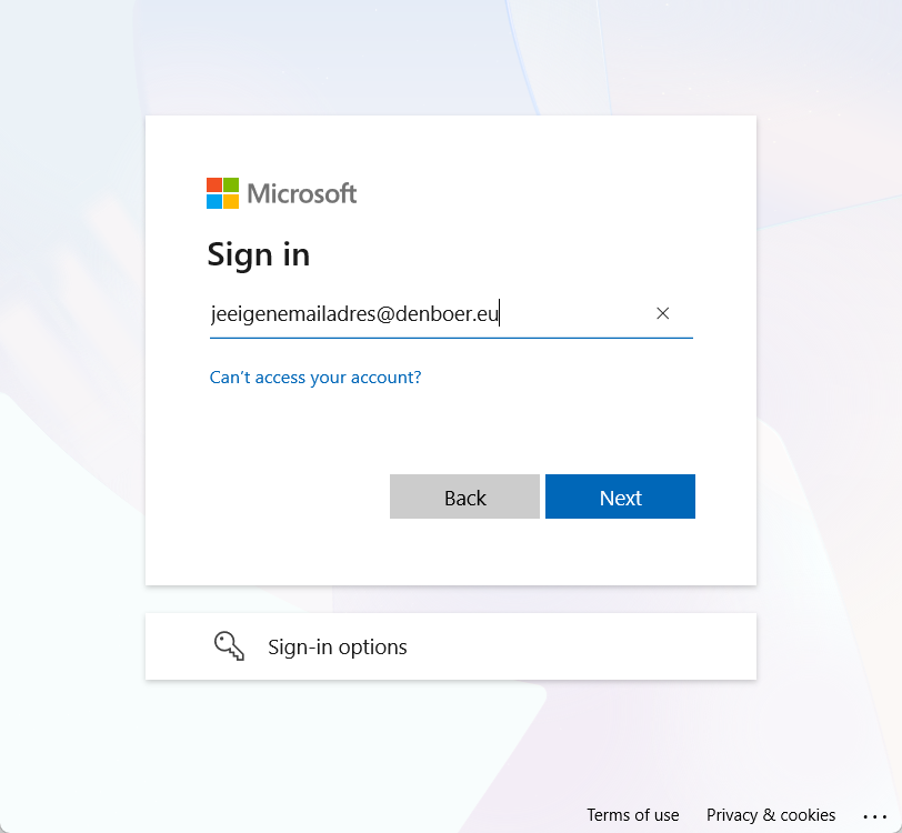 In het volgende scherm, klik op Sign in with another account / Log in met een ander account